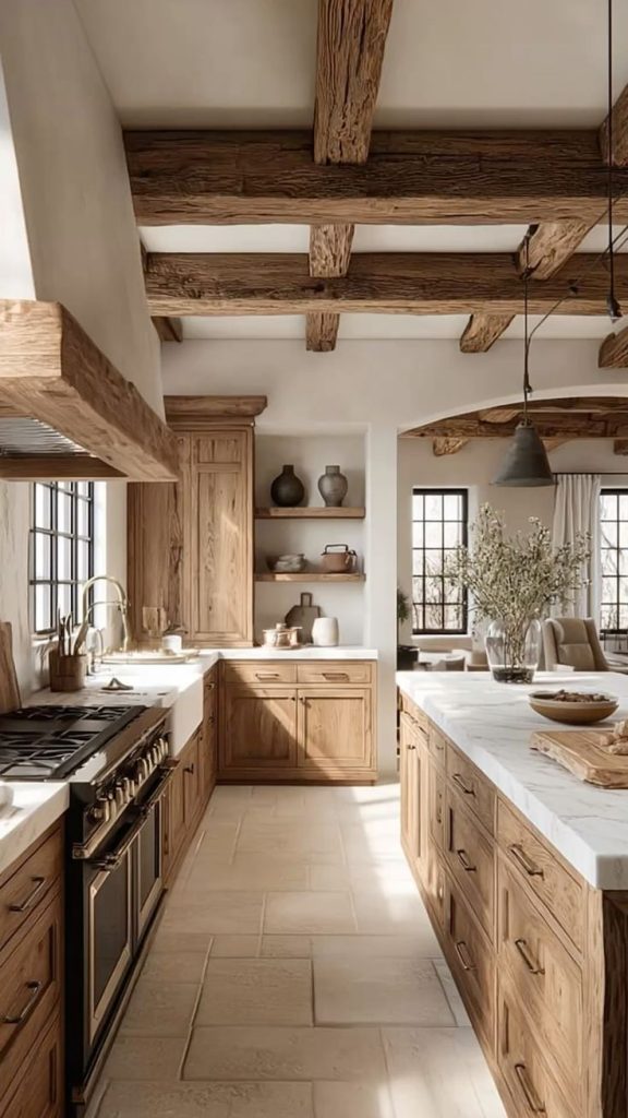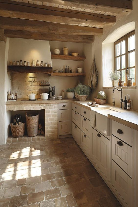 Las cocinas rurales se caracterizan por su calidez, funcionalidad y conexión con la tradición. Su diseño combina materiales naturales como madera, piedra y hierro forjado, creando un ambiente acogedor y hogareño. Su distribución prioriza la practicidad, con zonas bien definidas para cocinar, almacenar y preparar alimentos. Los colores cálidos y terrosos, junto con detalles artesanales como cestas, utensilios de madera y textiles rústicos, refuerzan la sensación de hogar y simplicidad típica del campo. Este estilo combina comodidad, estética tradicional y un toque nostálgico que invita a disfrutar de la cocina como corazón del hogar.