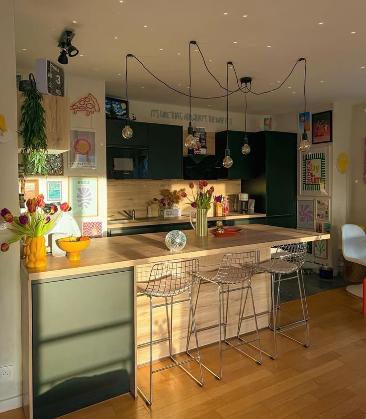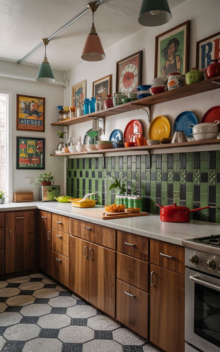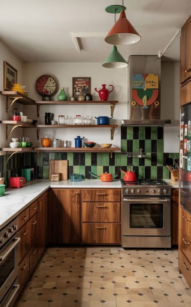 Las cocinas vintage pop se caracterizan por su estilo alegre, desenfadado y lleno de personalidad. Inspiradas en décadas pasadas, combinan formas retro con un aire moderno y dinámico. Los espacios transmiten energía y creatividad, convirtiendo la cocina en un lugar divertido y acogedor donde el color, la originalidad y el espíritu nostálgico son protagonistas.