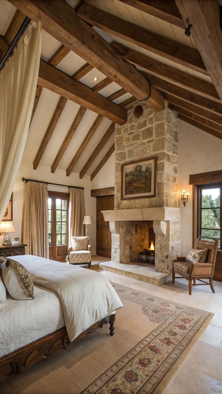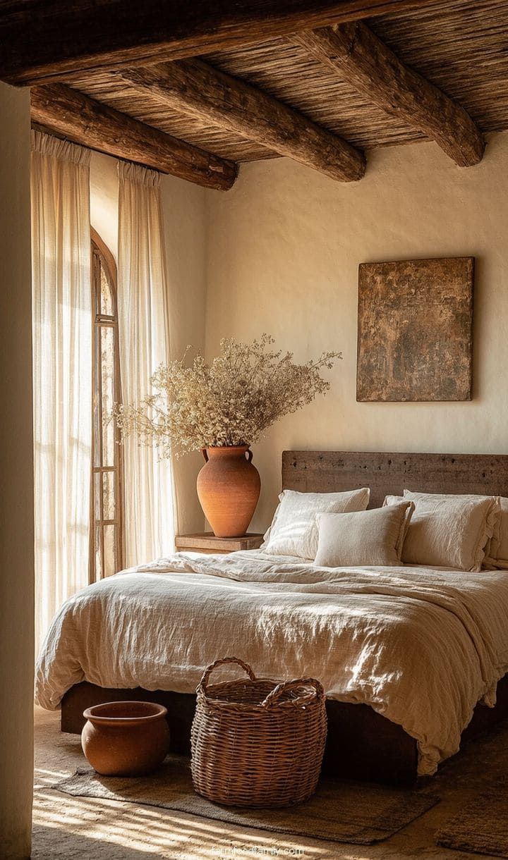 La paleta de colores de las habitaciones rústicas se inspira en la naturaleza y transmite calidez y confort. Predominan tonos tierra como marrón, beige, terracota y verde oliva, combinados con matices madera natural y crema. Esta gama cromática crea un ambiente acogedor, armonioso y relajante, reforzando la sensación de refugio y autenticidad propia del estilo rústico.