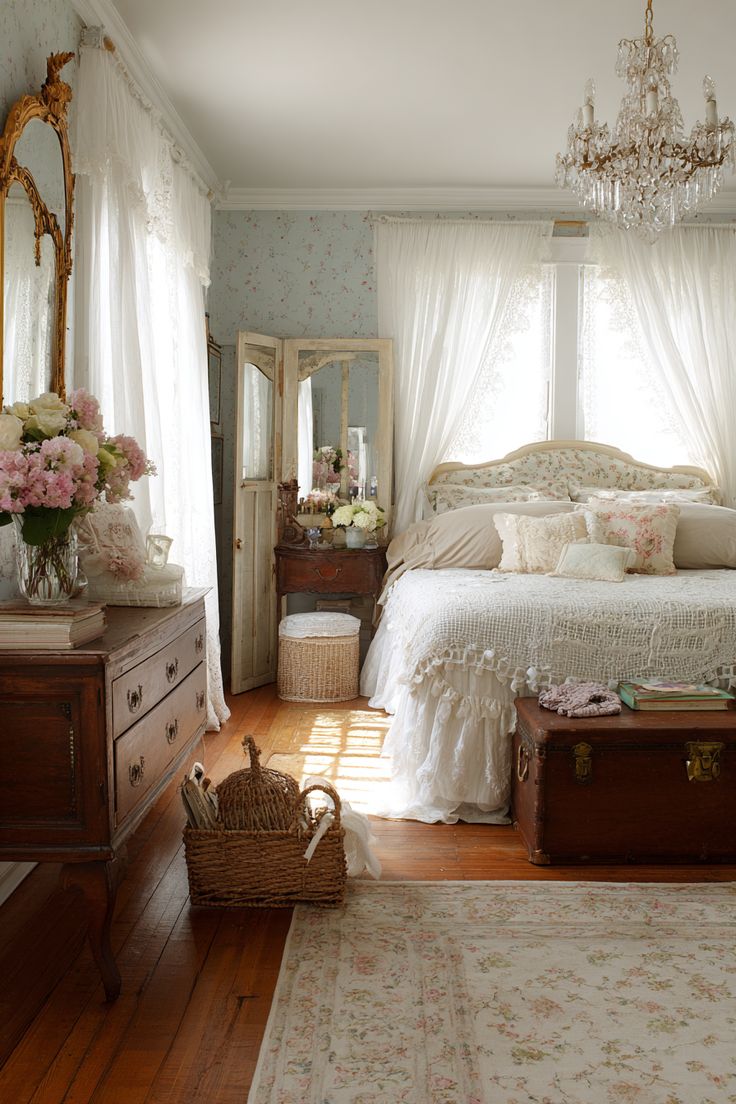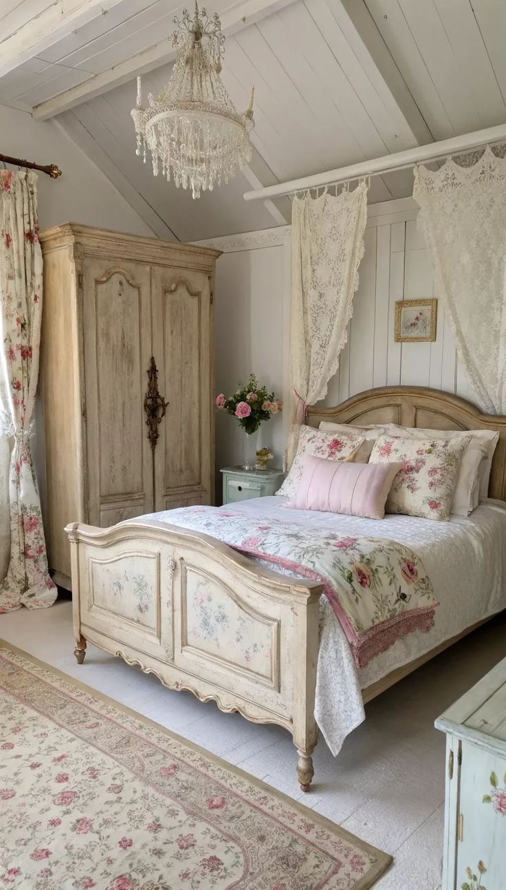 La paleta de colores de las habitaciones Shabby se basa en tonos suaves y delicados que transmiten calma y romanticismo. Predominan colores como blanco roto, crema, rosa palo, gris claro y beige, que se combinan para crear un ambiente luminoso, armonioso y acogedor. Estos tonos refuerzan el carácter nostálgico y encantador del estilo, aportando serenidad y dulzura al espacio.